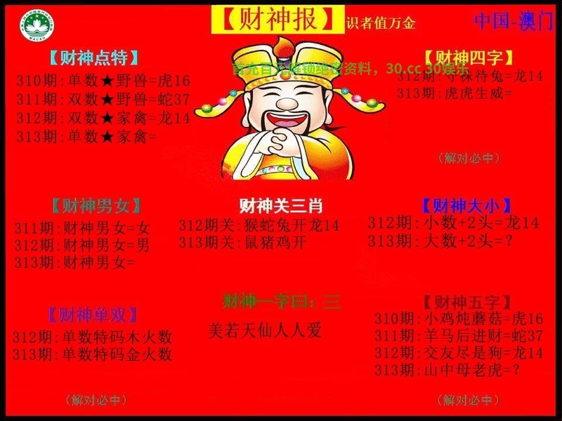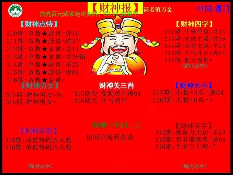 金财神《财神报图》444062.com